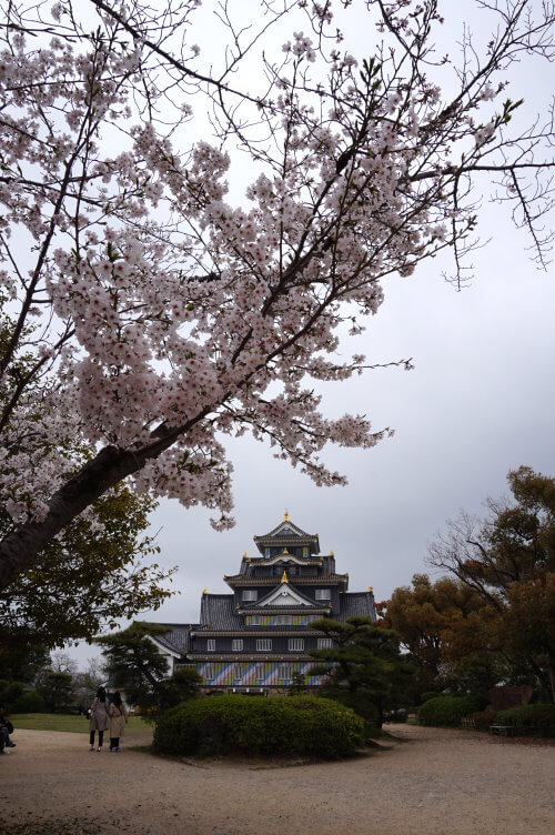從岡山城走到停車場的途中,雖然不多但也有零星偏布的櫻花樹,